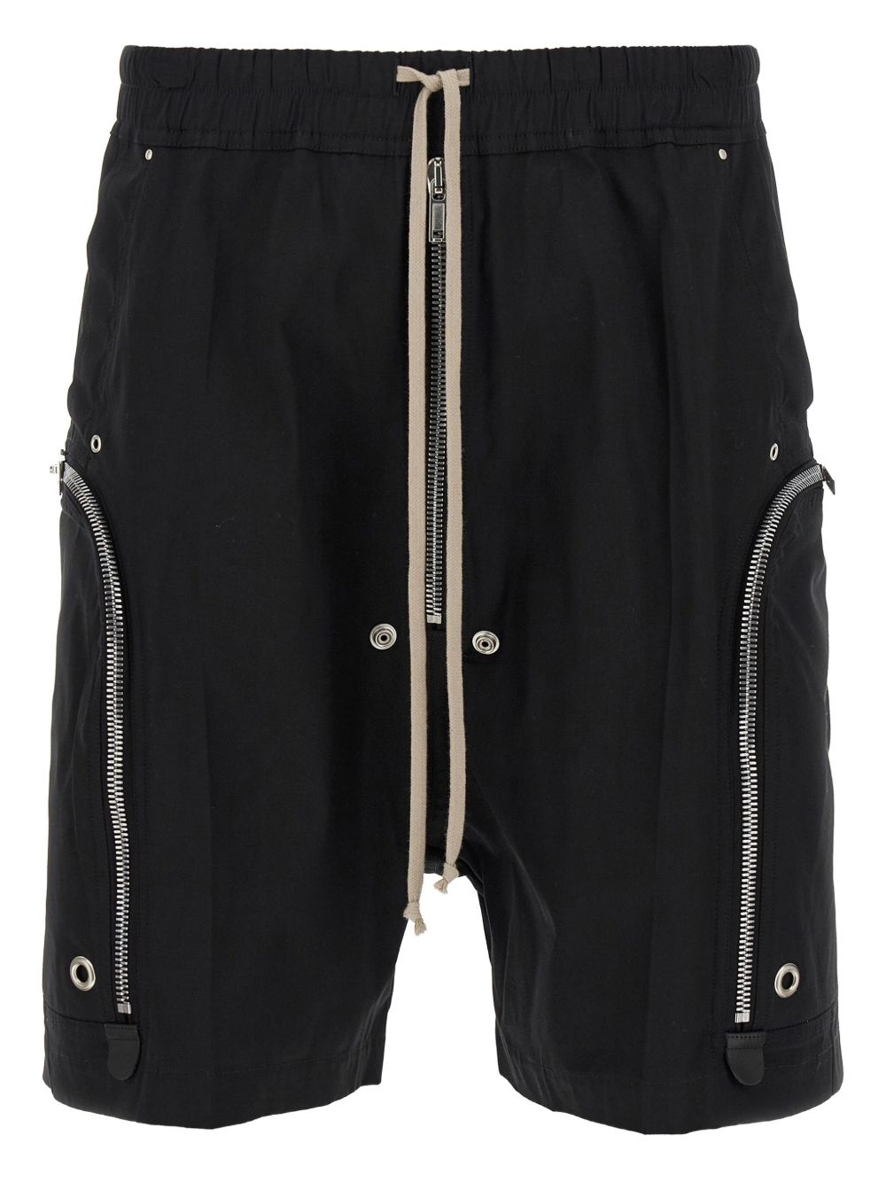 Bauhaus zip-pocket drawstring shorts Highlights - Black - Drawstring waist - Zip fastening - Side zip pockets - Flap pockets - Button detailing Made in Italy Composition Cotton 97%, Elastane 3% Washing instructions Read Manufacturer Guidelines