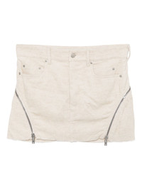 Bolan Banana mini skirt Highlights - Ecru - Front button and zip fastening - Belt loops - Two front patch pockets - Coin pocket - Belt loops Made in Italy Composition Cotton 74%, Linen/Flax 26% SIZE & FIT Model measurements Height 5 ft 10 in(1.78 m) Bust/Chest 30.31 in(77 cm) Hips 34.64 in(88 cm) Waist 23.22 in(59 cm) FittingInformation This mini-length skirt is intended to be worn just below the waist Made from a midweight non-stretch fabric Washing instructions Dry Clean Only
