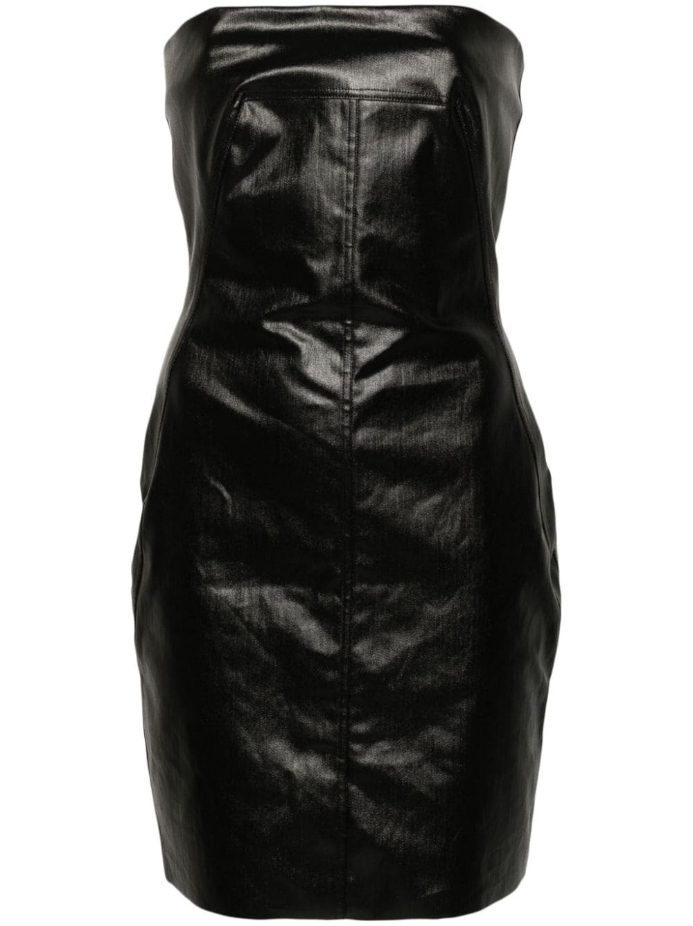 Coated-denim bustier mini dress