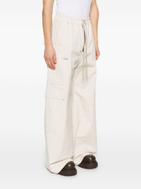 Cargobelas trousers Highlights - Light beige - Drawstring fastening - Elasticated waistband - Two side slash pockets - Two rear welt pockets Made in Italy Composition Organic Cotton 97%, Elastane 3% SIZE & FIT Model measurements Height 6 ft 2 in(1.87 m) Bust/Chest 37.79 in(96 cm) Hips 37.79 in(96 cm) Waist 30.31 in(77 cm) FittingInformation Designed with a wide leg, offering a loose and roomy fit The elasticated waist allows for a comfortable fit Made from a midweight stretch fabric, this piece offers elasticity and flexibility when worn