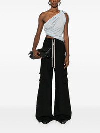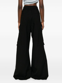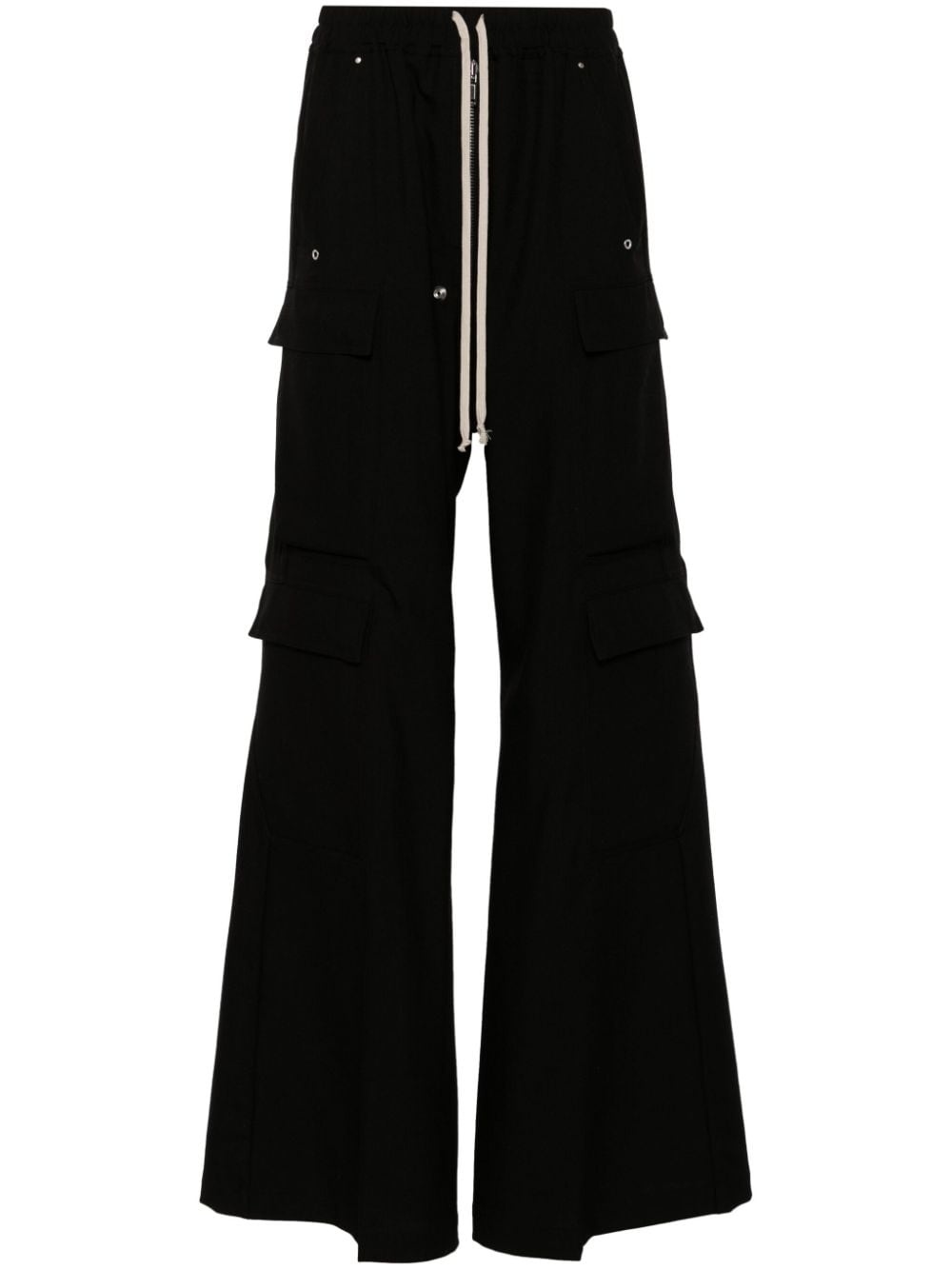 Cargobelas trousers Highlights - Black - Virgin wool - Grain de poudre - Front zip fastening - Elasticated drawstring waistband - Two diagonal pockets to the sides - Metal eyelet detailing - Two side cargo pockets - Two rear welt pockets - Wide leg Made in Italy Composition RWS Virgin Wool 100% SIZE & FIT Model measurements Height 5 ft 10 in(1.77 m) Bust/Chest 29.92 in(76 cm) Hips 34.25 in(87 cm) Waist 23.62 in(60 cm) FittingInformation Designed with a dropped crotch, these trousers allow for a close fit at the waist with a loose and relaxed fit through the leg The elasticated waist allows for a comfortable fit Made from a midweight non-stretch fabric This piece fits true to size – take your usual size