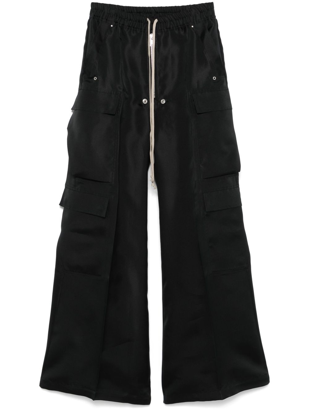 Cargobelas trousers Highlights - Black - Front zip fastening - Elasticated drawstring waistband - Two diagonal pockets to the sides - Two rear welt pockets Made in Italy Composition Silk 100% SIZE & FIT Model measurements Height 6 ft 2 in(1.87 m) Bust/Chest 38.18 in(97 cm) Hips 36.61 in(93 cm) Waist 29.13 in(74 cm) FittingInformation Designed with a wide leg, offering a loose and roomy fit The elasticated waist allows for a comfortable fit Made from a lightweight non-stretch fabric