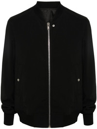 Classic Flight jacket Rick Owens’ black Classic Flight jacket lives up to its name with its relaxed bomber silhouette. It’s spun from wool threads with all the hallmarks of the style – from the press studs at the neck and pockets to the ribbed trims. Highlights - Black - Virgin wool - Knitted construction - Ribbed band collar - Long sleeves - Two press-stud fastening side pockets - Ribbed cuffs and hem - Internal zip-fastening pockets - Full lining - Front press-stud and zip fastening Made in Italy Composition Outer: Virgin Wool 100%, Cotton 100% Lining: Cotton 100%, Viscose 53%, Cupro 47% SIZE & FIT Model measurements Height 6 ft 2 in(1.88 m) Bust/Chest 36.61 in(93 cm) Hips 35.82 in(91 cm) Waist 27.95 in(71 cm) FittingInformation Designed for a relaxed fit, this piece allows for comfort and movement when worn The ribbed hem offers a close, comfortable fit Made from a midweight non-stretch fabric, this piece offers minimal elasticity when worn This piece fits true to size – take your usual size Washing instructions Dry Clean Only