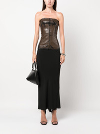 Bustier coated-finish top Highlights - Cedar brown/black - Cotton blend - Stretch-denim - Cracked effect - Coated finish - Bustier-style neckline - Rear zip fastening - Straight hem Made in Italy Composition Outer: Cotton 91%, Polyester 6%, Rubber 3% Lining: Polyamide 78%, Spandex/Elastane 22% SIZE & FIT Model measurements Height 5 ft 10 in(1.78 m) Bust/Chest 33.46 in(85 cm) Hips 36.22 in(92 cm) Waist 23.22 in(59 cm) Measurement LENGTH 15.98 in(40.6 cm) WAIST 22 in(55.9 cm) BUST 25.98 in(66 cm) FittingInformation Designed for a very close and sculpting fit Made from a midweight stretch fabric, this piece offers elasticity and flexibility when worn This piece fits true to size – take your usual size Washing instructions Hand Wash