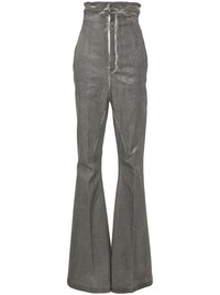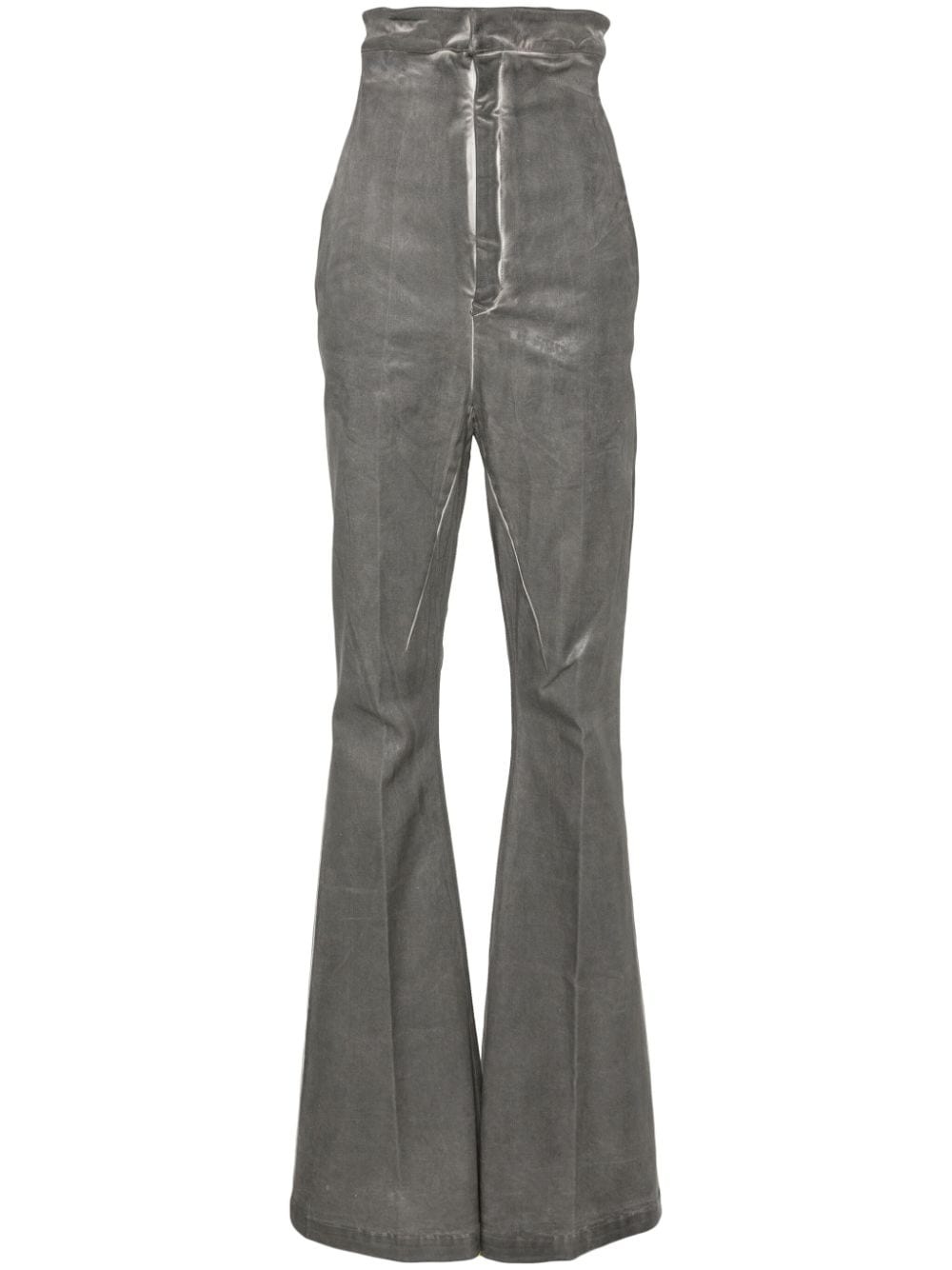 Dirt Bolan high-rise trousers Highlights - Medium grey - Cotton blend - Coated finish - Crease effect - Two side inset pockets - Pressed crease - Faux pocket detail - Flared hem - Concealed front button, hook and zip fastening Made in Italy Composition Outer: Buffalo Horn 100%, Cotton 85%, Polyester 15%, Spandex/Elastane 5% Lining: Cotton 100% SIZE & FIT Model measurements Height 5 ft 10 in(1.78 m) Bust/Chest 32.67 in(83 cm) Hips 35.43 in(90 cm) Waist 23.22 in(59 cm) FittingInformation Designed with a wide-leg cut, these trousers allow for a close fit at the waist and offer a loose and roomy fit over the leg Particularly long in length; consider your own measurements Made from a midweight stretch fabric, this piece offers elasticity and flexibility when worn This piece fits true to size – take your usual size