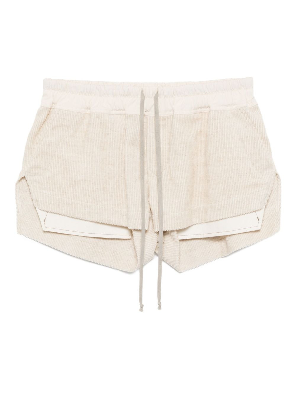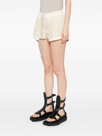 Fog shorts Highlights - Cream - Front tie fastening - Rear elasticated waistband - Two side slash pockets Made in Italy Composition Cotton 74%, Linen/Flax 26% SIZE & FIT Model measurements Height 5 ft 9 in(1.76 m) Bust/Chest 31.1 in(79 cm) Hips 35.03 in(89 cm) Waist 24.4 in(62 cm) FittingInformation Designed for a slim fit with a close-fitting internal layer The elasticated waist allows for a comfortable fit Made from a midweight non-stretch fabric Washing instructions Hand Wash