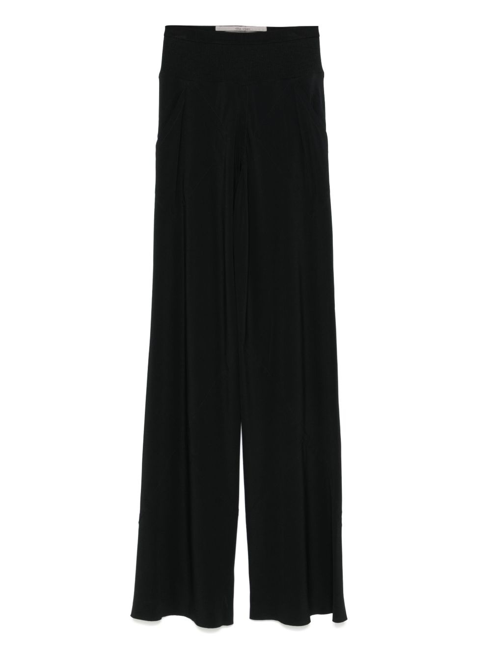 cotton-blend trousers Highlights - Black - Elasticated waistband - Ribbed detailing - Straight leg - Long length Made in Italy Composition Cotton 65%, Acetate 64%, Silk 36%, Polyamide 35% SIZE & FIT Model measurements Height 5 ft 10 in(1.79 m) Bust/Chest 33.07 in(84 cm) Hips 35.82 in(91 cm) Waist 24.01 in(61 cm) FittingInformation Designed with a wide-leg cut, these trousers allow for a close fit at the waist and offer a loose and roomy fit over the leg The elasticated waist allows for a comfortable fit Made from a lightweight non-stretch fabric Washing instructions Dry Clean Only