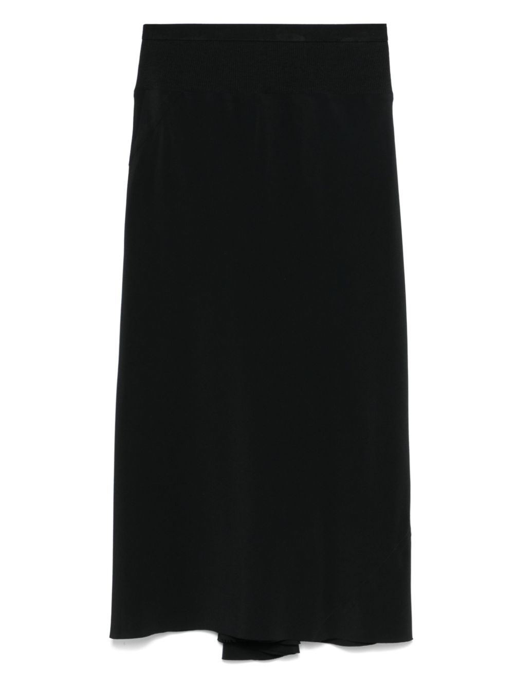 cotton-silk blend skirt Highlights - Black - Elasticated waistband - Ribbed detailing - Asymmetric hem - Mid-length Made in Italy Composition Cotton 65%, Acetate 64%, Silk 36%, Polyamide 35% SIZE & FIT Model measurements Height 5 ft 10 in(1.79 m) Bust/Chest 33.07 in(84 cm) Hips 35.82 in(91 cm) Waist 24.01 in(61 cm) FittingInformation This midi-length skirt is intended to be worn just below the waist The elasticated waist allows for a comfortable fit Made from a midweight non-stretch fabric