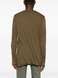 cotton T-shirt Highlights - Olive green - Organic cotton - Lightweight jersey - Round neck - Long sleeves - Straight hem Made in Italy Composition Organic Cotton 100% SIZE & FIT Model measurements Height 6 ft 2 in(1.88 m) Bust/Chest 36.61 in(93 cm) Hips 35.82 in(91 cm) Waist 27.95 in(71 cm) Measurement CHEST 41.73 in(106 cm) Shoulder Width 17.71 in(45 cm) SLEEVE LENGTH 25.59 in(65 cm) WAIST 39.37 in(100 cm) FittingInformation Designed for a relaxed fit, this piece allows for comfort and movement when worn Constructed with additional length on the sleeve Made from a lightweight non-stretch fabric, this piece offers minimal elasticity when worn This piece is only produced in one size; for help with this item's sizing, refer to our product measurements