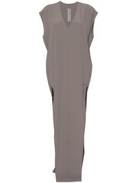 V-neck crepe maxi dress Highlights - Beige - Crepe texture - V-neck - Cap sleeves - Seam detailing to the front - Two thigh-high side slits - Internal logo tag - Unlined - Long length - Straight hem Made in Italy Composition Acetate 64%, Silk 36% SIZE & FIT Model measurements Height 5 ft 9 in(1.76 m) Bust/Chest 31.1 in(79 cm) Hips 36.61 in(93 cm) Waist 24.8 in(63 cm) FittingInformation Designed to be unstructured, offering a loose fit throughout Particularly long in length; consider your own measurements Made from a midweight non-stretch fabric This piece fits true to size – take your usual size Washing instructions Dry Clean Only