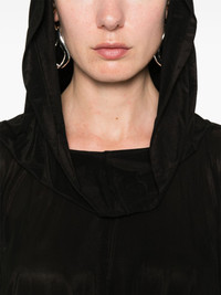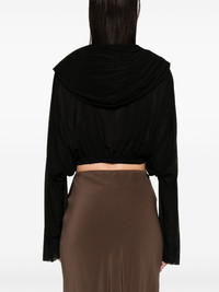 cropped hooded blouse Highlights - Black - Elasticated hem - Dolman sleeves - Semi-sheer construction Made in Italy Composition Cupro 92%, Elastane 8% SIZE & FIT Model measurements Height 5 ft 10 in(1.78 m) Bust/Chest 33.46 in(85 cm) Hips 36.22 in(92 cm) Waist 23.22 in(59 cm) Measurement BUST 34.64 in(88 cm) Shoulder Width 14.96 in(38 cm) SLEEVE LENGTH 27.55 in(70 cm) WAIST 25.19 in(64 cm) FittingInformation Designed to be unstructured, offering a loose fit throughout The elasticated waist allows for a comfortable fit Made from a midweight stretch fabric, this piece offers elasticity and flexibility when worn This piece is only produced in one size; for help with this item's sizing, refer to our product measurements