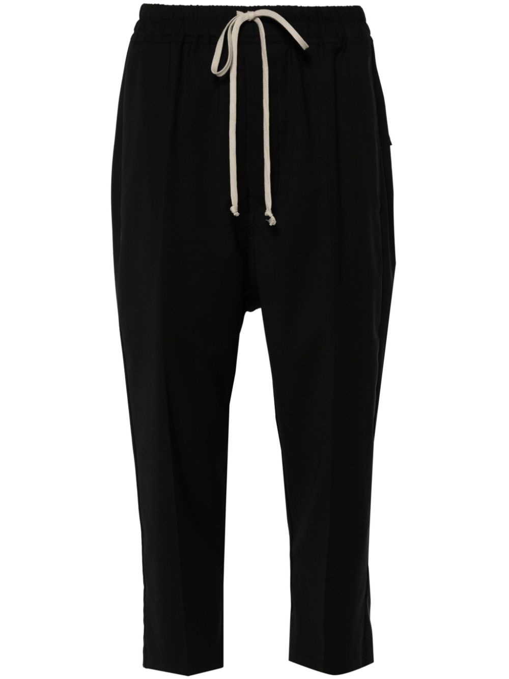 cropped-leg trousers Highlights - Black - Virgin wool - Pressed crease - Elasticated drawstring waistband - Two side inset pockets - Two rear patch pockets - Cropped leg - Concealed front button fastening Made in Italy Composition Buffalo Horn 100%, Virgin Wool 100% SIZE & FIT Model measurements Height 5 ft 10 in(1.77 m) Bust/Chest 32.28 in(82 cm) Hips 35.03 in(89 cm) Waist 25.19 in(64 cm) FittingInformation Designed with a dropped crotch, these trousers allow for a close fit at the waist with a loose and relaxed fit through the leg The elasticated waist allows for a comfortable fit Made from a lightweight non-stretch fabric This piece fits true to size – take your usual size