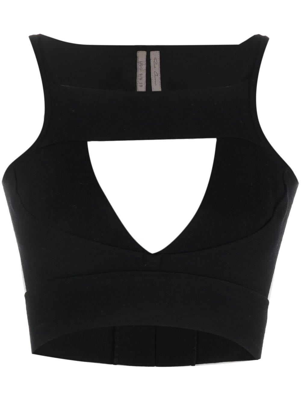 cut-out detail knit top jet black stretch-design cropped cut-out detailing V-neck sleeveless Made in Italy Composition Viscose 63%, Polyester 27%, Polyamide 7%, Spandex/Elastane 3% SIZE & FIT Model measurements Height 5 ft 9 in(1.74 m) Bust/Chest 32.28 in(82 cm) Hips 35.82 in(91 cm) Waist 24.01 in(61 cm) FittingInformation This piece fits true to size. We recommend you get your regular size Cut for a close fit Made with a mid-weight stretch fabric Washing instructions Dry Clean Only