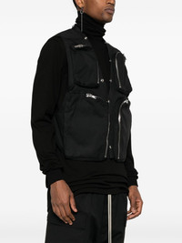 cut out-detail vest Highlights - Black - Cotton blend - Stretch-design - V-neck - Sleeveless - Four front zip-fastening pockets - Two side slit pockets - Cut-out detailing - Adjustable strap to the rear - Front press-stud fastening Imported Composition Lining: Cotton 100% Outer: Organic Cotton 97%, Spandex/Elastane 3% SIZE & FIT Model measurements Height 6 ft 2 in(1.88 m) Bust/Chest 35.03 in(89 cm) Hips 35.82 in(91 cm) Waist 27.95 in(71 cm) FittingInformation Designed for a slim fit, offering a comfortable fit that sits just away from the body The adjustable tabs allow for fitted preferences Made from a midweight fabric This piece fits true to size – take your usual size Washing instructions Dry Clean Only