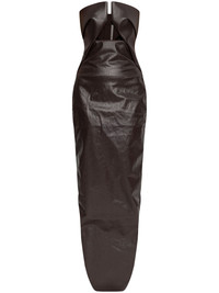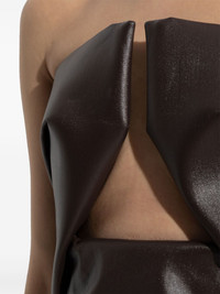 Strapless cutout coated-denim gown Brown