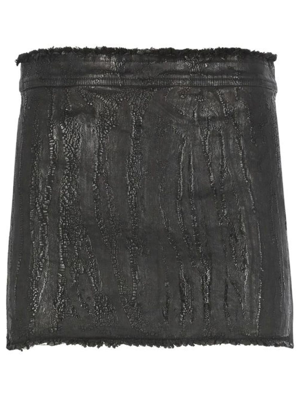 denim mini skirt Highlights - Black - Cotton blend - Stretch-design - Denim - Coated finish - Cracked effect - Rear zip fastening - Raw-cut edge - Thigh-length Made in Italy Composition Cotton 91%, Elastomultiester 6%, Synthetic Rubber 3%