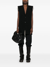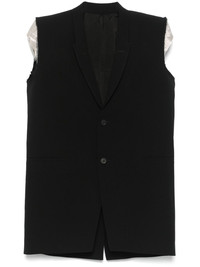 Dirt tailored vest Highlights - Black - Front button fastening - Two side welt pockets - Central rear vent - Shoulder pads Made in Italy Composition Lining: Cupro 100% Outer: Wool 100%, Buffalo Horn 100% SIZE & FIT Model measurements Height 5 ft 11 in(1.8 m) Bust/Chest 32.67 in(83 cm) Hips 36.22 in(92 cm) Waist 24.4 in(62 cm) FittingInformation Designed for a boxy fit, intended for a loose fit throughout The internal shoulder pads offer a structured shape Made from a midweight non-stretch fabric