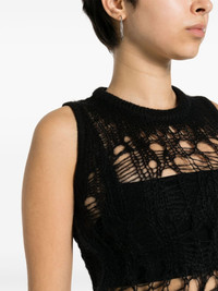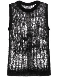 distressed-effect knitted vest Highlights - Black - Mohair blend - Brushed effect - Round neck - Knitted construction - Distressed effect - Sleeveless - Straight hem Made in Italy Composition Polyamide 50%, Mohair 45%, Wool 5% SIZE & FIT Model measurements Height 5 ft 11 in(1.8 m) Bust/Chest 33.07 in(84 cm) Hips 37 in(94 cm) Waist 25.59 in(65 cm) FittingInformation Designed for a slim fit that sits just away from the body offering a close yet comfortable fit Made from a lightweight non-stretch fabric This piece fits true to size – take your usual size Washing instructions Hand Wash