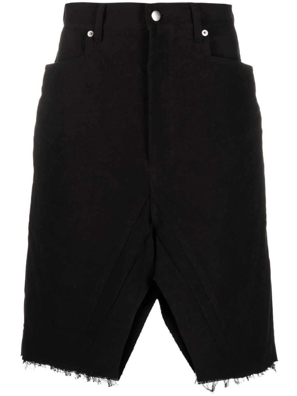 distressed-hem denim bermuda shorts Highlights - Jet black - Cotton - Denim - Silver-tone hardware - Distressed finish - Belt loops - Front button and zip fastening - Two side inset pockets - Two rear patch pockets Made in Italy Composition Cotton 100% SIZE & FIT Model measurements Height 6 ft 2 in(1.87 m) Bust/Chest 38.18 in(97 cm) Hips 36.61 in(93 cm) Waist 29.13 in(74 cm) FittingInformation Designed to finish below the knee Sturdy and hard-wearing, this denim piece offers no stretch This piece fits true to size – take your usual size Washing instructions Dry Clean Only