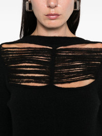 distressed sweater Highlights - Black - Distressed detail - Long sleeves - Straight hem Made in Italy Composition Alpaca Wool 48%, Polyamide 30%, Wool 20%, Elastane 2% SIZE & FIT Model measurements Height 5 ft 10 in(1.78 m) Bust/Chest 33.46 in(85 cm) Hips 36.22 in(92 cm) Waist 23.22 in(59 cm) Washing instructions Hand Wash