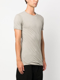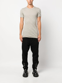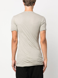 Double SS cotton T-shirt Exhbiting the quiet minimalism Rick Owens is known for, this T-shirt is crafted from pearl-grey cotton. The subtle gathering renders it a contemporary take on classic styles. Highlights - Pearl grey - Cotton - Gathered detailing - Crew neck - Short sleeves - Straight hem Made in Italy Composition Cotton 100% SIZE & FIT Model measurements Height 6 ft 1 in(1.85 m) Bust/Chest 35.43 in(90 cm) Hips 35.82 in(91 cm) Waist 27.55 in(70 cm) Measurement CHEST 38.58 in(98 cm) SLEEVE LENGTH 9.05 in(23 cm) Shoulder Width 14.56 in(37 cm) FittingInformation Designed for a close fit throughout Made from a lightweight non-stretch fabric, this piece offers minimal elasticity when worn This piece fits true to size – take your usual size Washing instructions Hand Wash