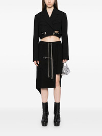 Dracca skirt Highlights - Black - Wool - Asymmetric design - Zip details - Knee-length - Rear zip-fastening pocket - Rear flap pocket - Elasticated drawstring waistband - Raw-cut hem Made in Italy Composition Wool 100% SIZE & FIT Model measurements Height 5 ft 10 in(1.77 m) Bust/Chest 27.95 in(71 cm) Hips 34.64 in(88 cm) Waist 22.83 in(58 cm) FittingInformation Designed with an asymmetric hem, this skirt is intended to be worn just below the waist The partially elasticated waistband offers increased movement and comfort at the waist Made from a midweight non-stretch fabric This piece fits true to size – take your usual size Washing instructions Dry Clean Only