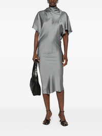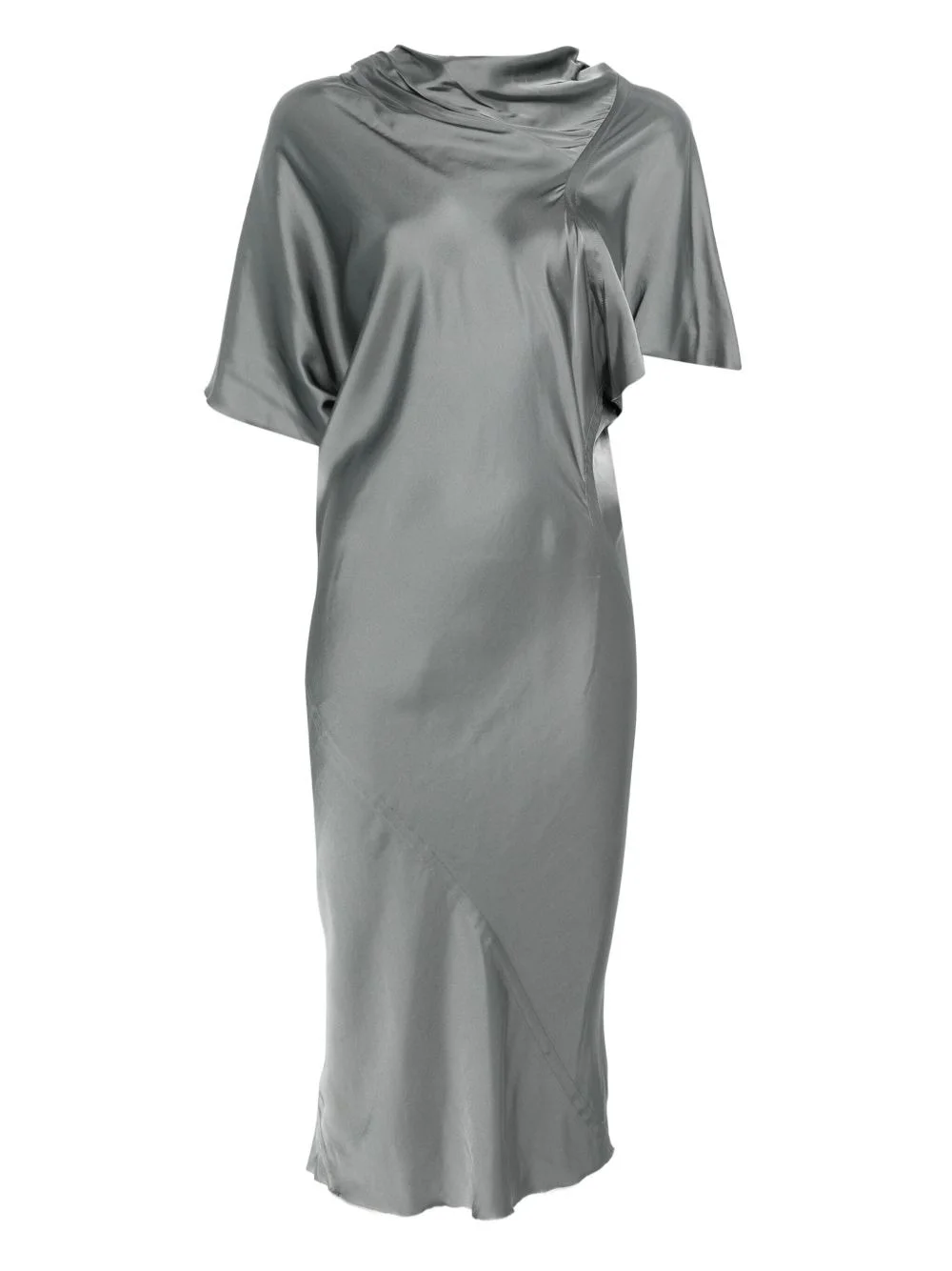 draped cowl-neck dress Highlights - Grey - Cowl neck - Draped detailing - Short sleeves Made in Italy Composition Acetate 61%, Viscose 39% Washing instructions Dry Clean Only