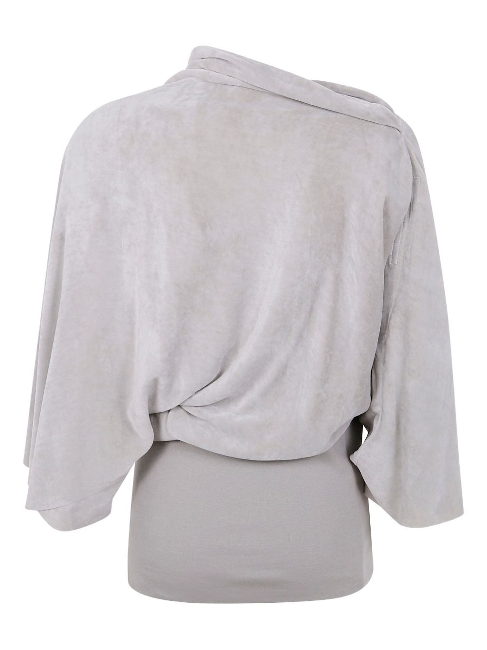 draped cowl-neck top Highlights - Pearl - Cowl neck - Draped design - Three-quarter sleeves Made in Italy Composition Cotton 100%, Viscose 53%, Acetate 47% Washing instructions Read Manufacturer Guidelines