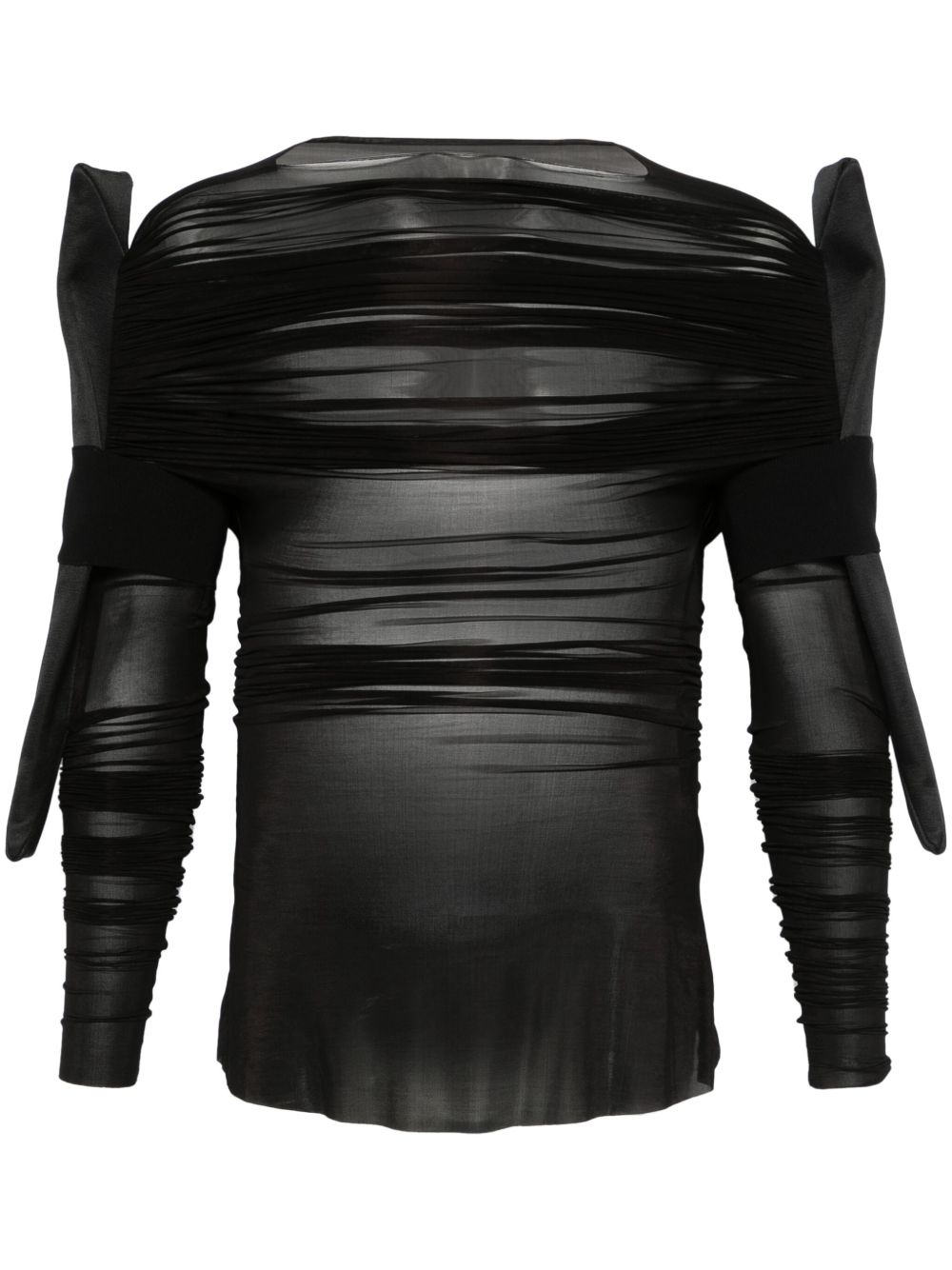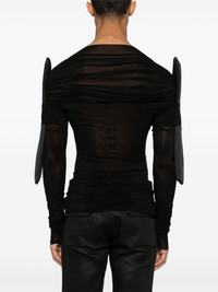 draped-detailing T-shirt Highlights - Black - Boat neck - Padded panels - Long sleeves - Straight hem Made in Italy Composition Wool 100%, Cupro 92%, Cotton 81%, Silk 19%, Elastane 8% SIZE & FIT Model measurements Height 6 ft 2 in(1.87 m) Bust/Chest 38.18 in(97 cm) Hips 36.61 in(93 cm) Waist 29.13 in(74 cm) FittingInformation Designed for a close fit throughout Made from a lightweight stretch fabric, this piece offers elasticity and flexibility when worn