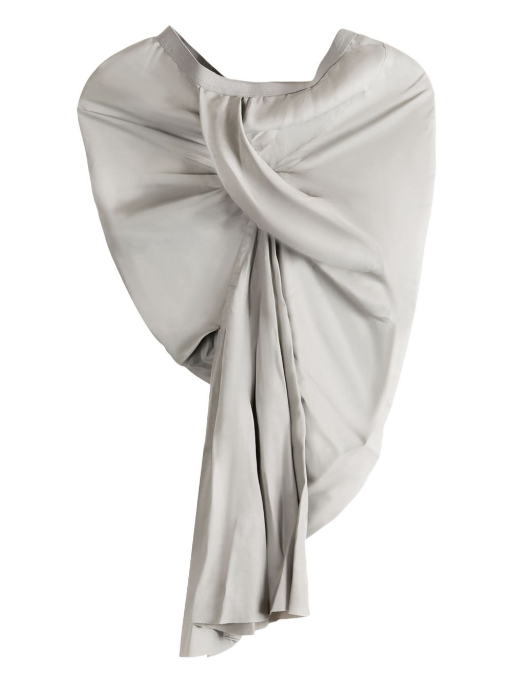 draped twisted skirt Highlights - Pearl grey - Twisted front - Draped design - Asymmetrical hem - High waist - Straight skirt Made in Italy Composition FSC Acetate 64%, Silk 36% SIZE & FIT FittingInformation This midi-length skirt is intended to be worn just below the waist The elasticated waist allows for a comfortable fit Made from a midweight non-stretch fabric Washing instructions Read Manufacturer Guidelines