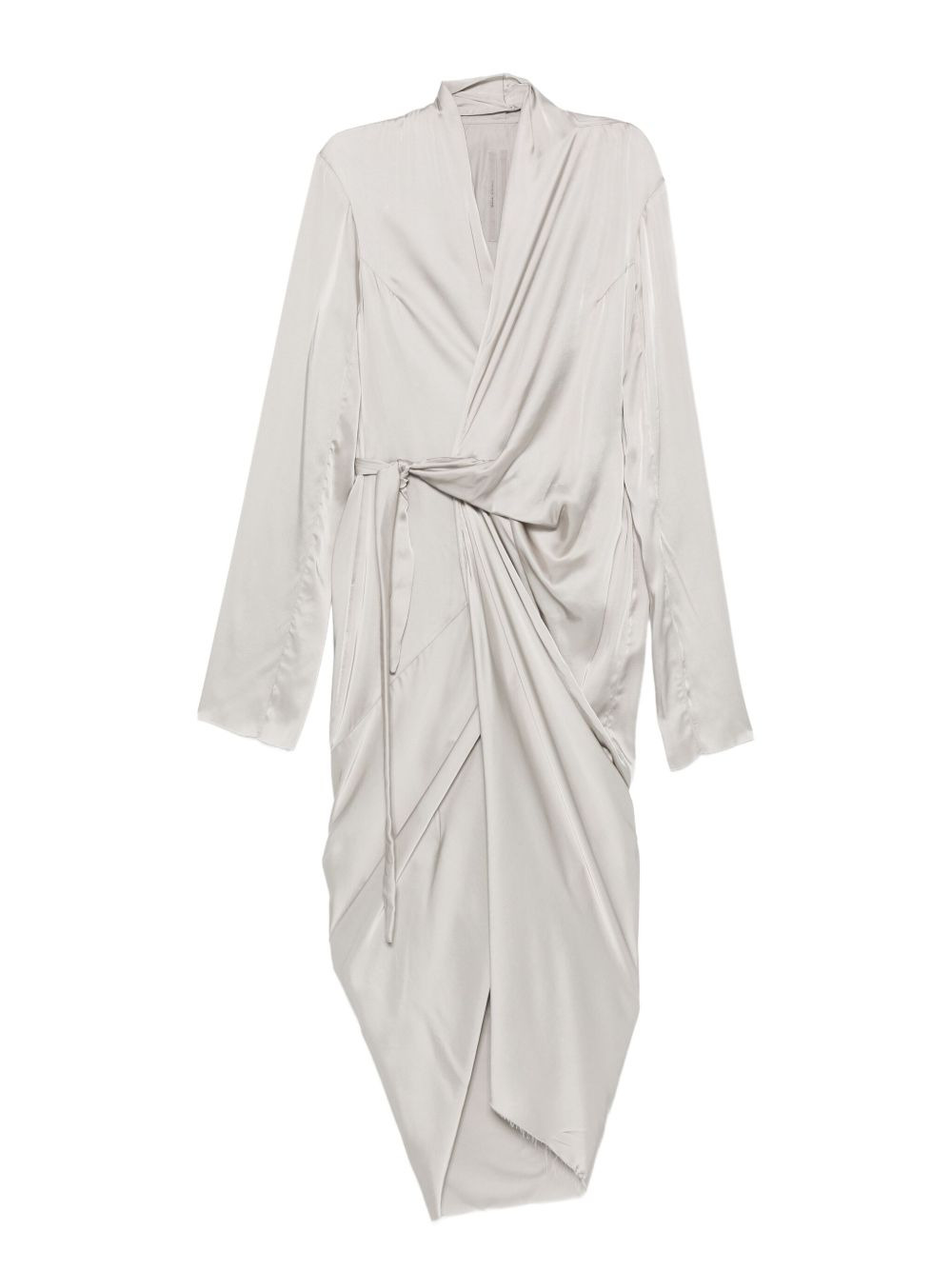 draped wrap midi dress Highlights - Light grey - Wrap design - Asymmetrical hem - Long sleeves - Self-tie belt Made in Italy Composition Acetate 61%, Viscose 39% SIZE & FIT Model measurements Height 5 ft 10 in(1.78 m) Bust/Chest 31.49 in(80 cm) Hips 37 in(94 cm) Waist 23.62 in(60 cm) Washing instructions Dry Clean Only