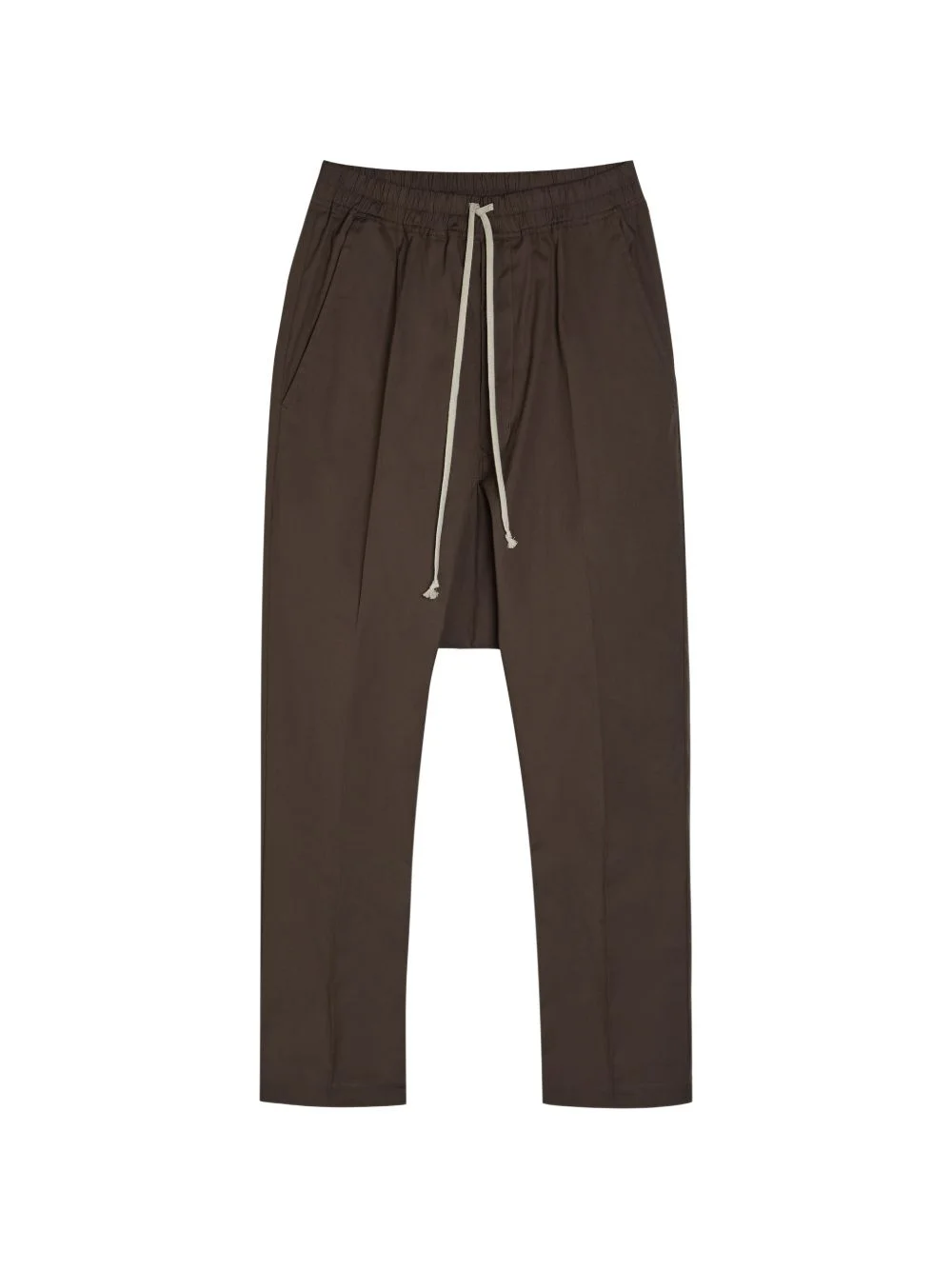 drawstring pleated trousers Highlights - Brown - Drawstring - Pleated - Elasticated waistband - Side pockets Imported Composition Organic Cotton 97%, Elastane 3% Bottoms: Buffalo Horn 100%