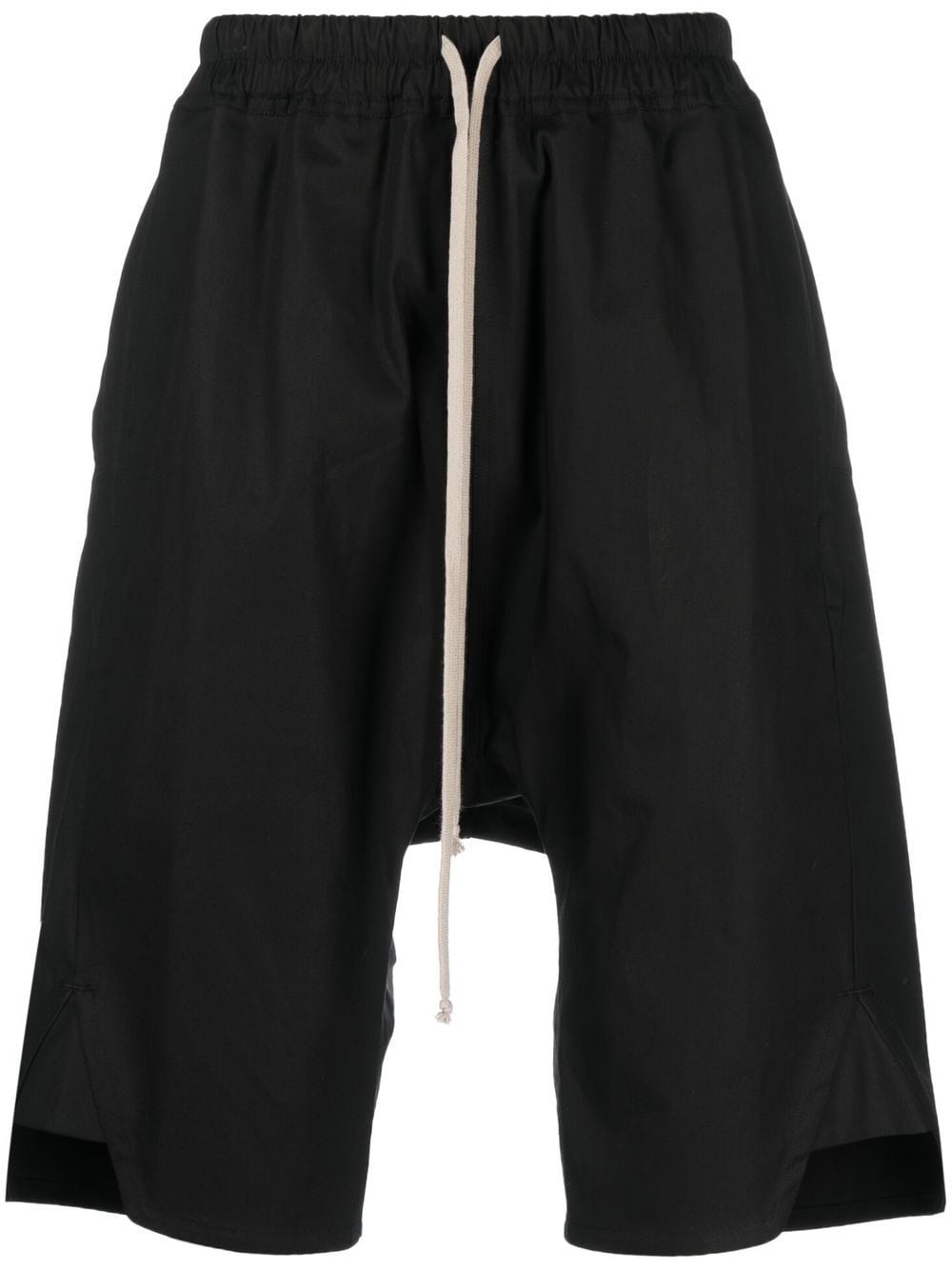 drawstring-waist shorts Highlights - Black - Organic cotton - Side slits - Elasticated drawstring waistband - Two side inset pockets - Two rear zip-fastening pockets Made in Italy Composition Organic Cotton 97%, Elastane 3% SIZE & FIT Model measurements Height 6 ft 0 in(1.84 m) Bust/Chest 36.22 in(92 cm) Hips 35.43 in(90 cm) Waist 26.77 in(68 cm) FittingInformation This piece fits true to size. We recommend you get your regular size Designed for a slim fit at the waist and loose over the leg Made with a mid-weight stretch fabric Washing instructions Hand Wash