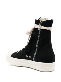 Broken high-top sneakers black/white frayed detailing front lace-up fastening rubber toecap flat rubber sole Made in Italy Composition Outer: Fabric 100% Lining: Fabric 100% Rubber 100% SIZE & FIT Measurement HEEL 1.37 in(3.5 cm) HEIGHT 6.49 in(16.5 cm) Sole height 1.18 in(3 cm)