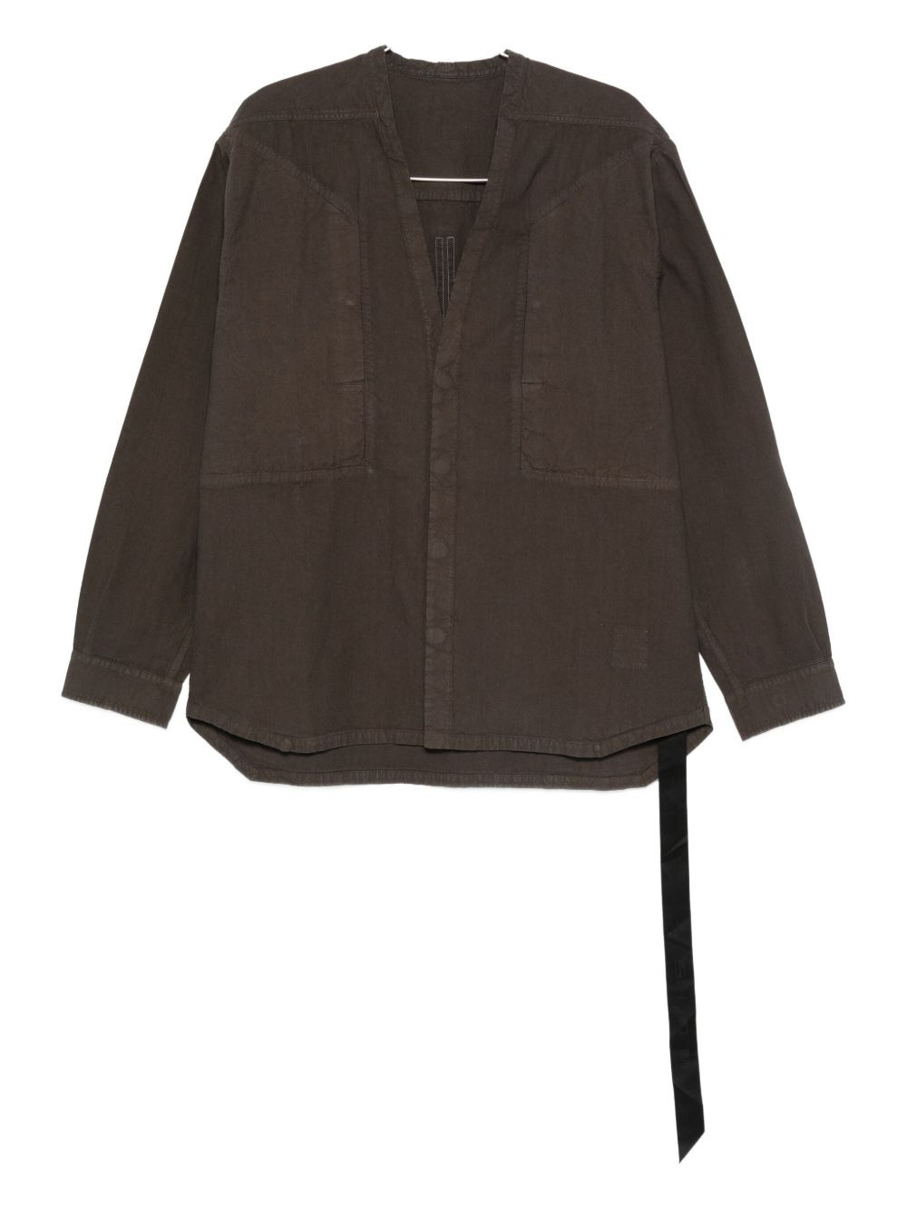 button-fastening cotton shirt Highlights - Brown - V-neck - Button fastening - Long sleeves - Patch pockets - Black tie belt Made in Italy Composition Cotton 100% Washing instructions Read Manufacturer Guidelines