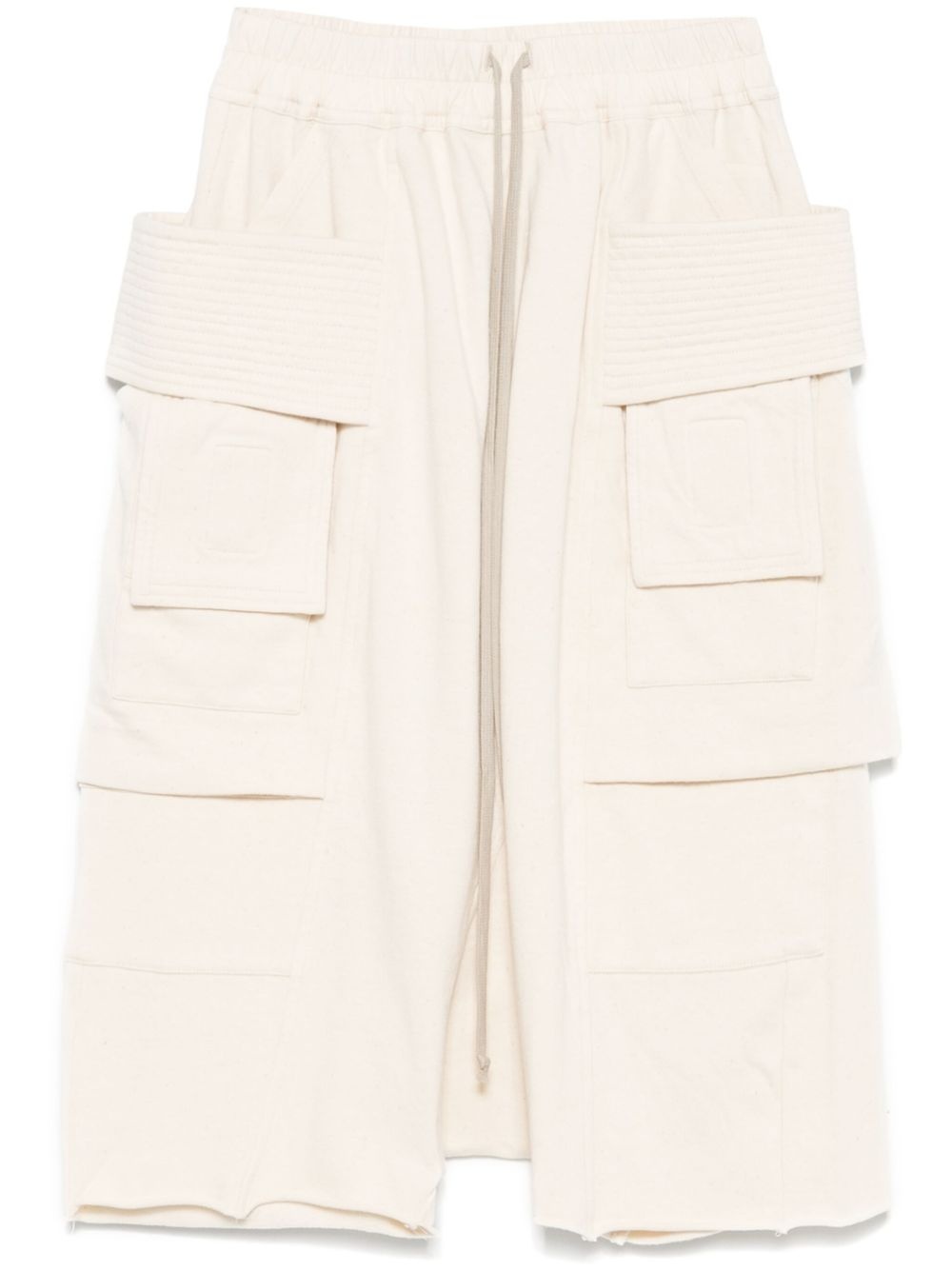 Creatch cargo shorts Highlights - Ecru - Elasticated drawstring waistband - Two side slit pockets - Two rear flap pockets - Raw-cut hem Made in Italy Composition Organic Cotton 100%