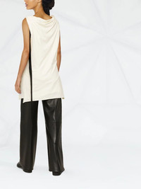 draped organic cotton tunic Highlights - Light beige - Organic cotton - Draped design - Ruched detailing - Boat neck - Side slits - Sleeveless - Straight hem - Thigh-length Made in Italy Composition Organic Cotton 100% SIZE & FIT Model measurements Height 5 ft 10 in(1.78 m) Bust/Chest 30.31 in(77 cm) Hips 36.61 in(93 cm) Waist 24.8 in(63 cm) FittingInformation This piece fits true to size. We recommend you get your regular size Cut for a loose fit Made with a mid-weight fabric Washing instructions Hand Wash