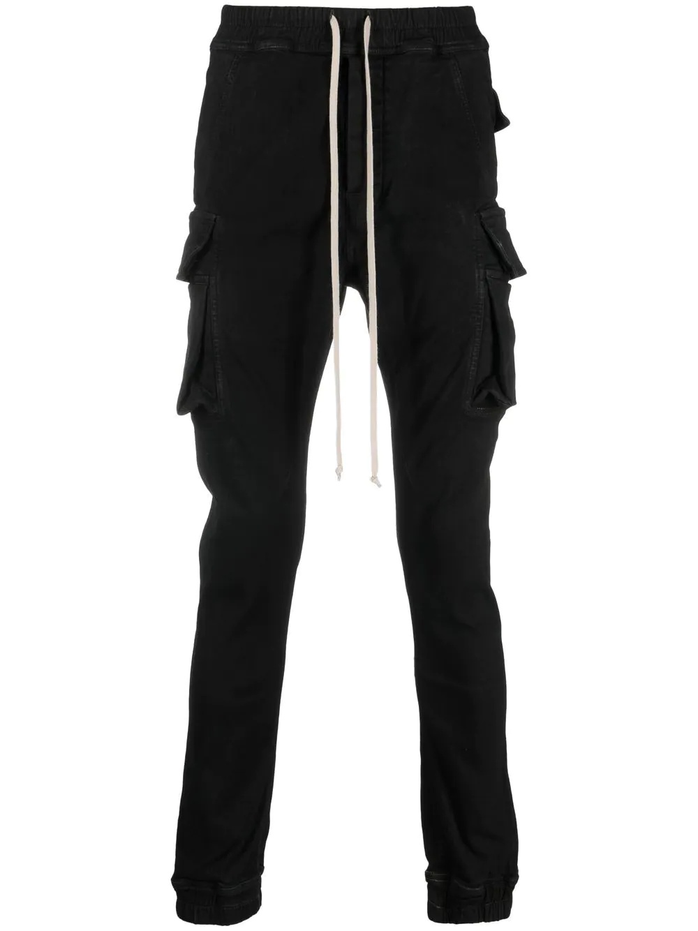 drawstring skinny trousers Channelling Rick Owens' streetwear-inspired aesthetic, these skinny trousers are characterised by their drawstring waist and multiple cargo pockets throughout. Made in Italy Composition Outer: Cotton 91%, Polyester 6%, Rubber 3% Lining: Cotton 100% SIZE & FIT Model measurements Height 6 ft 2 in(1.87 m) Bust/Chest 38.18 in(97 cm) Hips 36.61 in(93 cm) Waist 29.13 in(74 cm) FittingInformation This piece fits true to size. We recommend you get your regular size Cut for a close fit Made with a mid-weight stretch fabric Washing instructions Hand Wash