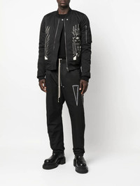 drop-crotch trousers Showcasing a nonchalant approach to style, Rick Owens DRKSHDW presents these trousers, which boast a drop-crotch, slouchy silhouette. Made in Italy Composition Polyamide 53%, Cotton 47% SIZE & FIT Model measurements Height 6 ft 2 in(1.87 m) Bust/Chest 36.41 in(92.5 cm) Hips 37 in(94 cm) Waist 29.52 in(75 cm) FittingInformation This piece fits true to size. We recommend you get your regular size Designed to be loose over the leg with a fitted waist and hem Made with a mid-weight non-stretch fabric Washing instructions Dry Clean Only