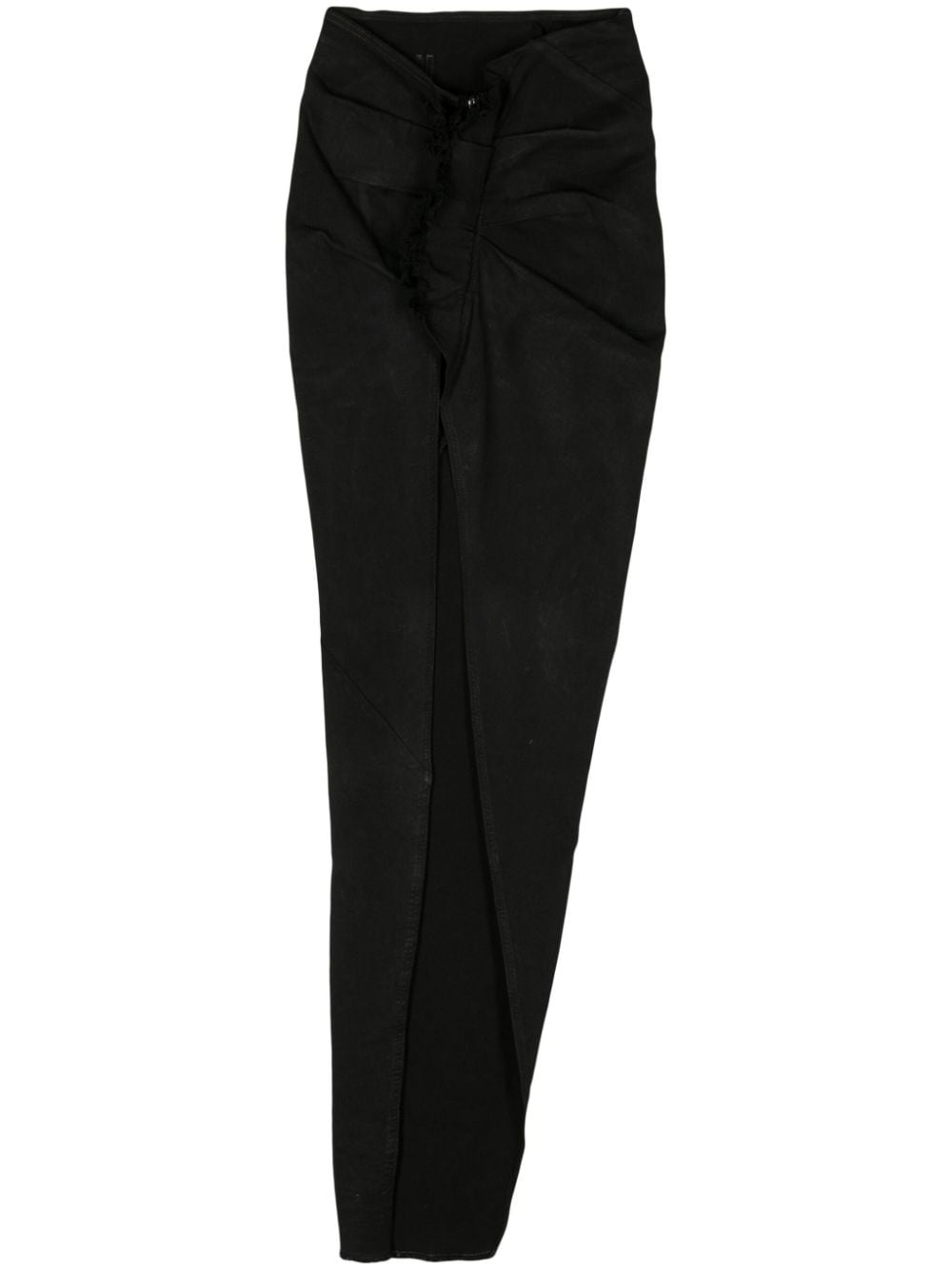EDFU asymmetric denim skirt Highlights - Black - Cotton blend - Denim - Coated finish - Asymmetric design - Pleat detailing - Ruffled detailing - Frayed edge - Low-rise - Concealed side zip fastening - Side slit - Asymmetric hem - Maxi Made in Italy Composition Cotton 91%, Elastomultiester 6%, Rubber 3%