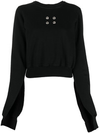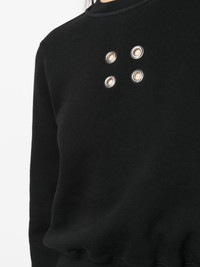 eyelet-embellished cropped sweatshirt black cotton ribbed trim eyelet embellishment crew neck long sleeves armholes straight hem cropped Made in Italy Composition Cotton 100% SIZE & FIT Model measurements Height 5 ft 10 in(1.78 m) Bust/Chest 31.49 in(80 cm) Hips 36.22 in(92 cm) Waist 25.59 in(65 cm) FittingInformation This piece fits true to size. We recommend you get your regular size Cut for a relaxed fit Made with a mid-weight fabric Washing instructions Hand Wash