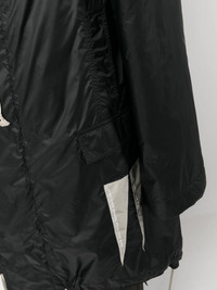 fishtail hooded raincoat black fishtail design drawstring hood concealed front fastening two front flap pockets long sleeves drawstring hem Made in Italy Composition Lining: Polyester 100% Outer: Polyamide 100% SIZE & FIT Model measurements Height 6 ft 2 in(1.87 m) Bust/Chest 35.82 in(91 cm) Hips 35.43 in(90 cm) Waist 27.95 in(71 cm) Washing instructions Dry Clean Only