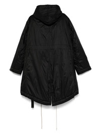 Fishtail parka Highlights - Black - Recycled polyamide - Shell - Padded design - Front press-stud and zip fastening - Drawstring hood - Long sleeves - Two front welt pockets - Two front flap pockets - Rear slit - Two internal pockets - Full lining - Drawstring hem - Mid-length Made in Italy Composition Outer: Recycled Polyamide 100% Lining: Polyester 90%, Acrylic (Fiber) 10% SIZE & FIT FittingInformation Designed to be unstructured, offering a loose fit throughout The adjustable drawstring means that you can adjust this piece’s fit to suit your comfort and preference Made from a padded non-stretch fabric, giving it no natural elasticity