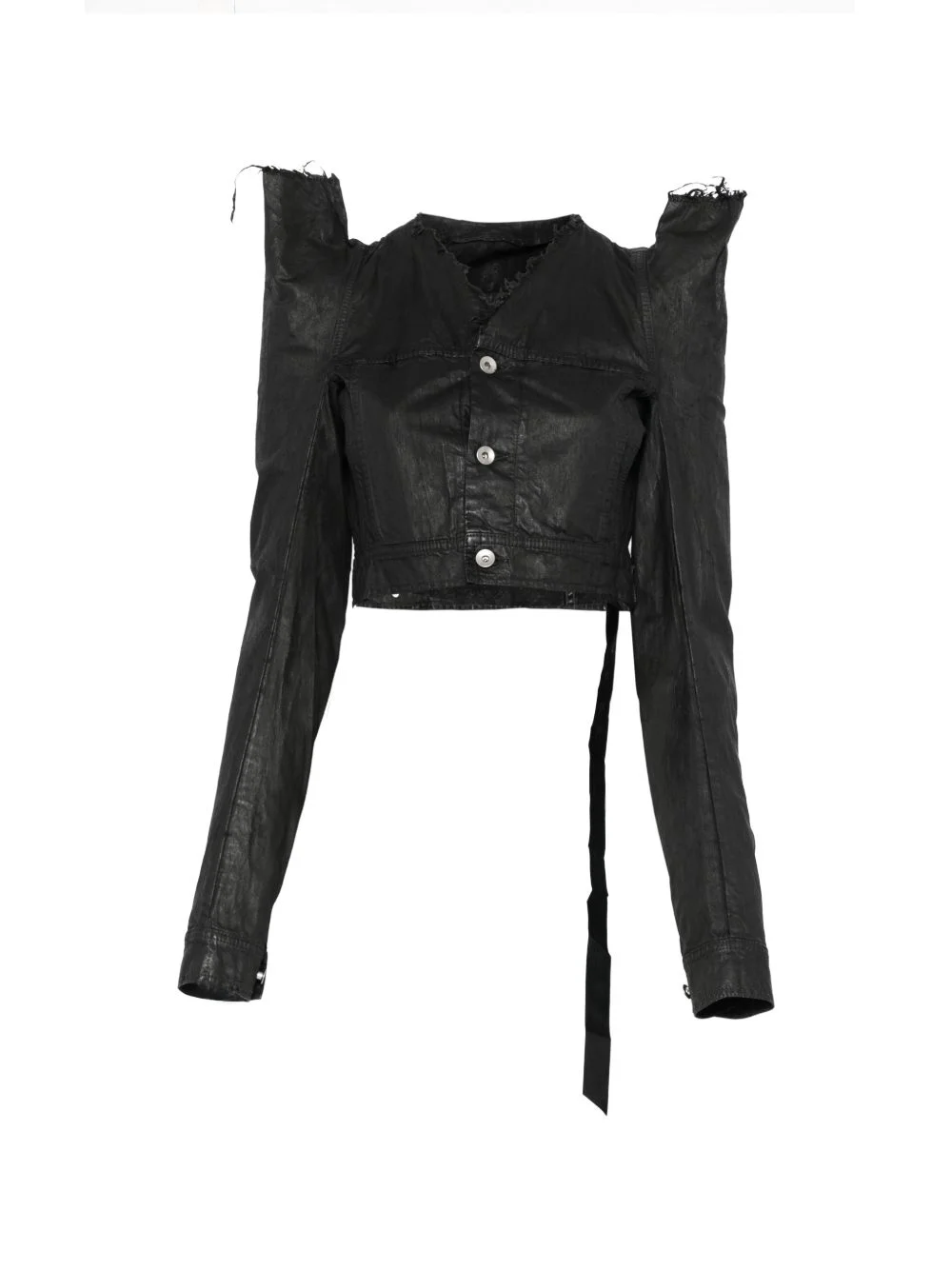 frayed jacket Highlights - Black - Frayed detailing - Button fastening - Long sleeves - Tie detail - Cropped Made in Italy Composition Cotton 100% Washing instructions Read Manufacturer Guidelines