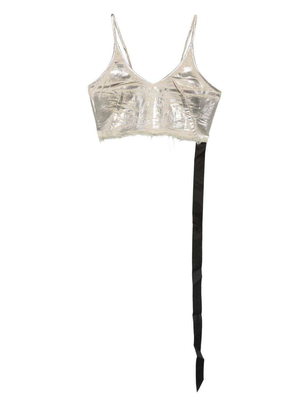 frayed top Highlights - Silver-tone - Frayed hem - V-neck - Spaghetti straps Made in Italy Composition Cotton 90%, Polyester 7%, Rubber Fibre 3% Washing instructions Read Manufacturer Guidelines