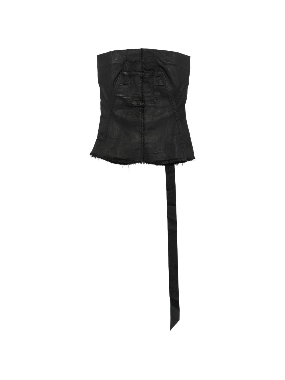 frayed top Highlights - Black - Zip fastening - Fringed hem - Ribbon detail - Strapless - Panelled design Made in Italy Composition Cotton 91%, Elastane 9% Washing instructions Machine Wash