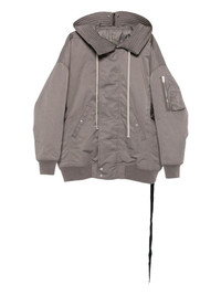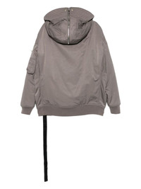 hooded bomber jacket Highlights - Dust grey - Recycled polyamide - Twill weave - Padded design - Front zip fastening - Concealed front press-stud fastening - Drawstring hood with zip detail - Funnel neck - Drop shoulder - Long sleeves - Sleeve zip pocket - Ribbed cuffs - Logo-tape detailing - Two press-stud fastening side pockets - Two internal slip pockets - Full lining - Ribbed hem Made in Italy Composition Outer: Recycled Polyamide 53%, Organic Cotton 47% Lining: Polyamide 100%, Cotton 100%, Polyester 90%, Acrylic (Fiber) 10%