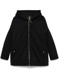 Hooded Peter coat Highlights - Black - Recycled polyamide blend - Padded design - Front zip fastening - Classic hood - Drop shoulder - Long sleeves - Two front stud-fastening pockets - Full lining - Straight hem Made in Italy Composition Outer: Recycled Polyamide 53%, Organic Cotton 47% Lining: Cotton 100%, Polyamide 100%, Polyester 90%, Acrylic (Fiber) 10%