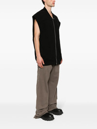 Jumbo Flight organic cotton gilet Highlights - Black - Organic cotton - Soft jersey - Band collar - Cap sleeves - Seam detailing - Slip pockets to the sides - Full lining - Front zip fastening Made in Italy Composition Lining: Organic Cotton 100% Outer: Organic Cotton 100% SIZE & FIT Model measurements Height 6 ft 2 in(1.87 m) Bust/Chest 37.79 in(96 cm) Hips 37.79 in(96 cm) Waist 30.31 in(77 cm) FittingInformation Designed for a relaxed fit, this piece allows for comfort and movement when worn The ribbed hem offers a close, comfortable fit Made from a midweight non-stretch fabric, this piece offers minimal elasticity when worn This piece fits true to size – take your usual size Washing instructions Hand Wash