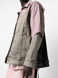 Jumbo Worker patchwork jacket black/grey/lavender purple cotton blend patchwork design classic collar front button fastening slip pockets to the sides long sleeves straight hem Made in Italy Composition Outer: Cotton 90%, Polyester 7%, Rubber 3% Lining: Cotton 100%, Polyamide 100% SIZE & FIT Model measurements Height 6 ft 2 in(1.87 m) Bust/Chest 36.41 in(92.5 cm) Hips 37 in(94 cm) Waist 29.52 in(75 cm) Washing instructions Dry Clean Only